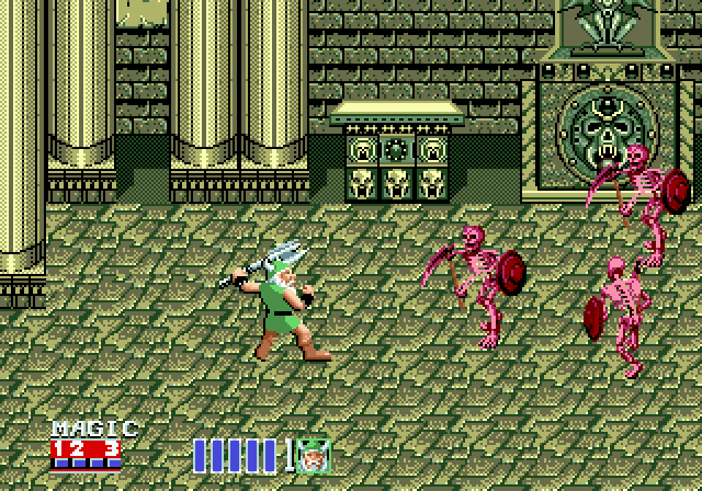 I guess the golden hotpant troops are like those red guys who protected the Emperor in Star Wars. I don't care how shiny their costumes are, they're still just men with clubs, and I can handle men with clubs. As for the boss, he's just a golden version of all the other headless knights and nothing special.I have to take something of a step into the unknown here. You see, when I was a kid, the only way I could play GA2 was over at my friend's house because when I was that age, owning two different current-gen consoles was the kind of luxury reserved for Arab sheiks and gods of the Roman pantheon. That'd be fine and everything, I mean, my friend only lived across the street. However, his parents had a very strict limit of only thirty minutes of gameplay per day. Thirty minutes! I mean, it didn't matter when we were playing something rock-hard like The Terminator or Hellfire because we were dead and out of continues by then anyway, but thirty minutes just isn't enough time to get anywhere in most videogames - lord help you if you fancied playing Shining Force 2. So, we had to combat this time limit by getting really good at certain games. I remember his older brother being some kind of transcendent master of Sonic the Hedgehog, but for our part, we got good at GA2. Granted we had to play it on easy for brevity's sake, but I would tentatively say that, for a while at least, we were the best GA2 players in the country, a phrase which I am going to start adding to my CV.