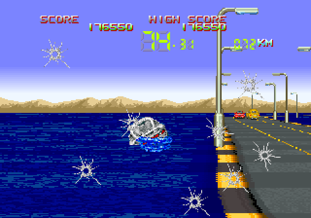 Yep, that got him. The rules have changed once again for the gladiatorial area - there are now seven opponents to defeat, but it only takes a single hit to kill or be killed and there're no ring to be pushed out of. Get a clean hit in and you progress to the next god, take a hit and well, hope you had fun because that's a game over. This is Great Swordsman's brutal nature, and if you lose a battle then it's a straight game over with no way to continue. It's not so bad at the start of the game where the points system gives you a little more leeway, but when you reach the Colosseum and you're one strike away from death it can be a little aggravating.
