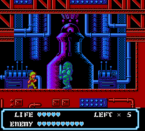 Ninja Gaiden-esque cut scene that move the plot along and feature some mostly-impressive art, even if the eyes are sometimes especially bulbous and glistening, even accounting for the anime artstyle. Now that he's escaped the Evil Forest, Ricky meets a young woman named Rosina who has eyes like hubcaps and helpful information about the abducted villagers. They were taken by the nefarious Count Crimson, who has plans for the Moon Crystal.