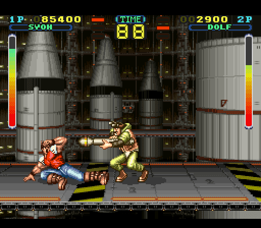 Extremely evenly matched, because Syoh and Zazi are the exact same bloody character with slightly different sprites. Tuff E Nuff’s cast of characters just shrank from four to three, and the tiny character roster is a real mark against the game. Imagine if the SNES version of Street Fighter II was released and the only playable characters were Ryu, Ken, Chun Li and Zangief.